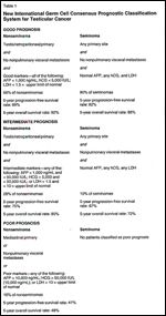 This new prognostic classification system-the International Germ Cell Consensus Classification-is shown in Table 1. This model divides patients into three tiers-those with good, intermediate, or poor prognosis.