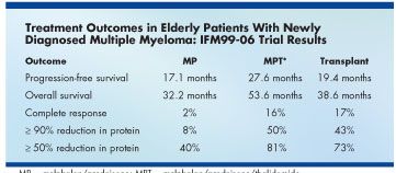 He noted that median survival with MP in multiple myeloma patients age 65 and older is approximately 3 years, "and new treatment regimens are needed."