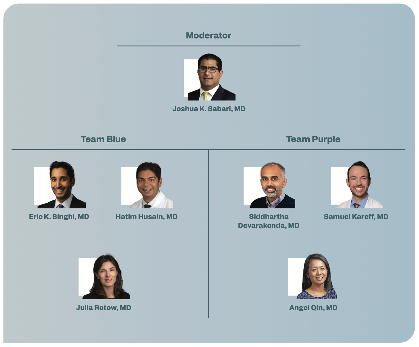 How does it work? There are 3 rounds: data presentations, topics, and patient cases. During each round, both teams can present and defend their ideas and challenge the other team. The judge determines the winner.