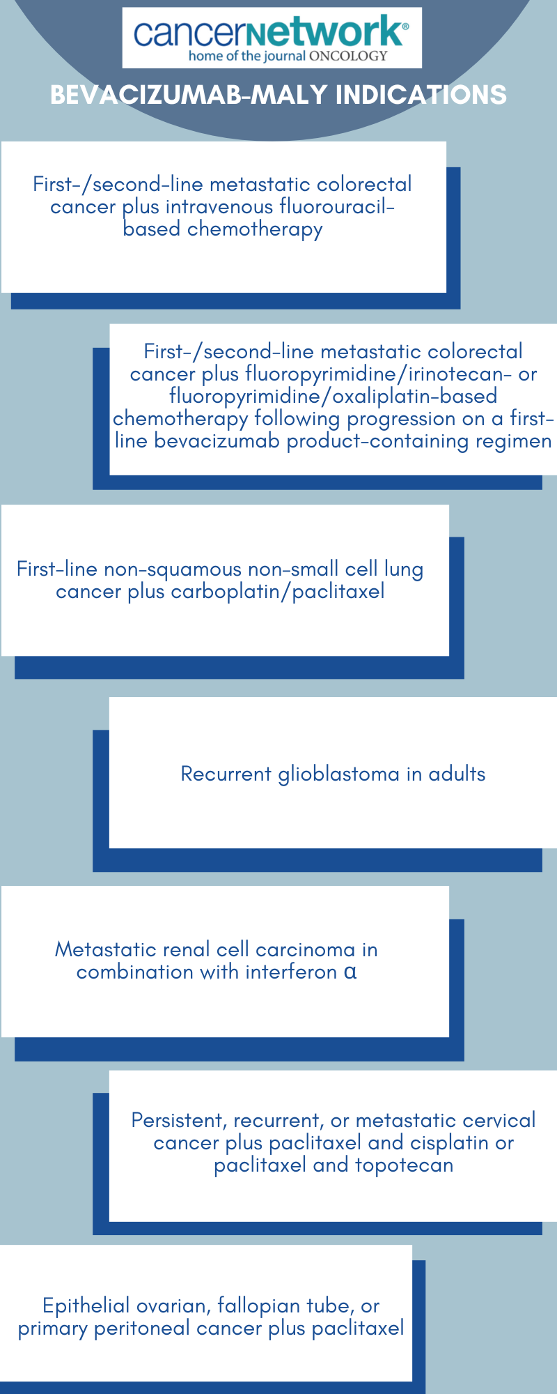 Bevacizumab-maly was approved by the FDA across numerous cancer indications, becoming the third FDA-approved bevacizumab biosimilar.