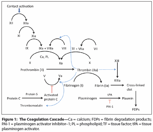Damaged blood vessels seal themselves through the natural process of coagulation that results in fibrin clot formation. The normal coagulation cascade, depicted in Figure 1, comprises three pathways: (1) the intrinsic contact activation pathway; (2) the extrinsic tissue factor pathway; and (3) the final common pathway, where the intrinsic and extrinsic pathways converge.