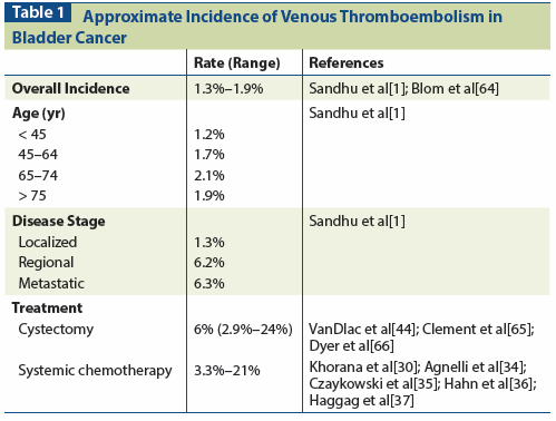 Table 1: Approximate Incidence of Venous Thromboembolism in Bladder Cancer