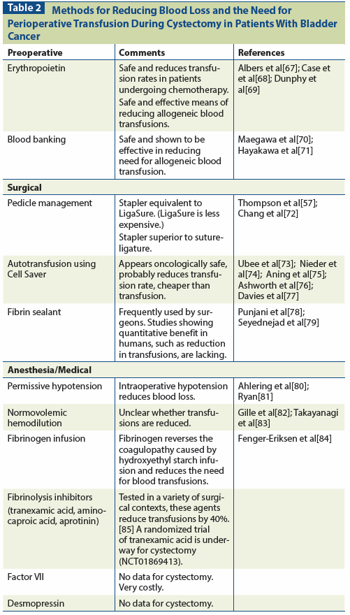 Table 2: Methods for Reducing Blood Loss and the Need for Perioperative Transfusion During Cystectomy in Patients With Bladder Cancer