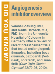 The second story showed that motesanib “is very active and can be considered parallel with bevacizumab,” Dr. Hudis said. But the study also revealed a hepatobiliary toxicity profi le with this drug, which is a concern, although that should not dampen interest in the drug. “Motesanib is a pan- VEGF inhibitor, and perhaps we need to tweak its targeting,” he said. “I don’t see this as negative but as consistent with the hypothesis that TKIs may have a role if we can get the approach right.”
