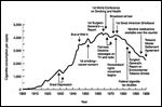 Annual per capita cigarette consumption increased from 54 cigarettes in 1900 to 4,345 cigarettes in 1963 and then decreased to 2,261 in 1998. Some decreases correlate with events, such as the first research suggesting a link between smoking and cancer in the 1950s, the 1964 Surgeon General’s report, the 1968 Fairness Doctrine, and increased tobacco taxation and industry price increases during the 1980s (Figure 1).