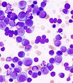 Histopathological image of multiple myeloma, smear preparation of bone marrow aspirate stained with May-Grnwald-Giemsa procedure; source: KGH, Wikimedia Commons