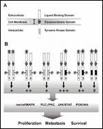 HER2 is a member of the erbB family of transmembrane tyrosine kinase receptors that also includes the epidermal growth factor receptor (EGFR or HER1), HER3, and HER4.[2] Although HER2 has no ligand of its own (Figure 1), it is preferentially recruited into ligand-activated complexes with other erbB family members, thereby potentiating signaling. At high density in transformed mammary carcinoma cells, HER2 is constitutively activated by phosphorylation, which is thought to promote dimerization and the subsequent promotion of tumor cell growth in a ligand-independent fashion.