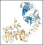 Ribbon diagram of the trastuzumab, a monoclonal antibody, bound to the extracellular domain of HER2
