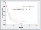 The general prognosis for adults with relapsed or refractory ALL is poor, with the median OS ranging between 4 and 7 months (Figure 2).[42,43] As would be expected, patients who are resistant to initial induction therapy, or those who have a CR duration of less than 12 months, do particularly poorly. The expected 5-year OS for adults with relapsed ALL is 5% to 10%, although some groups report improved outcomes for patients with a first CR of greater than 2 years.[44,45] There are several drugs and regimens for the salvage setting endorsed by the current guidelines, but most of these strategies are inadequate, and patients should always be considered for enrollment in a clinical trial first. There are several very promising new agents under investigation, and patients should be referred to centers that are accruing on these protocols.