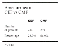 The NCIC investigators studied the incidence and prognostic value of drug- induced amenorrhea (DIA) during adjuvant therapy with anthracycline-containing regimens compared to standard CMF. They analyzed the database of a randomized phase III NCIC CTG trial conducted in 1989 to 1993 that included premenopausal and perimenopausal patients with node-positive breast cancer. Patients had been randomized either to: