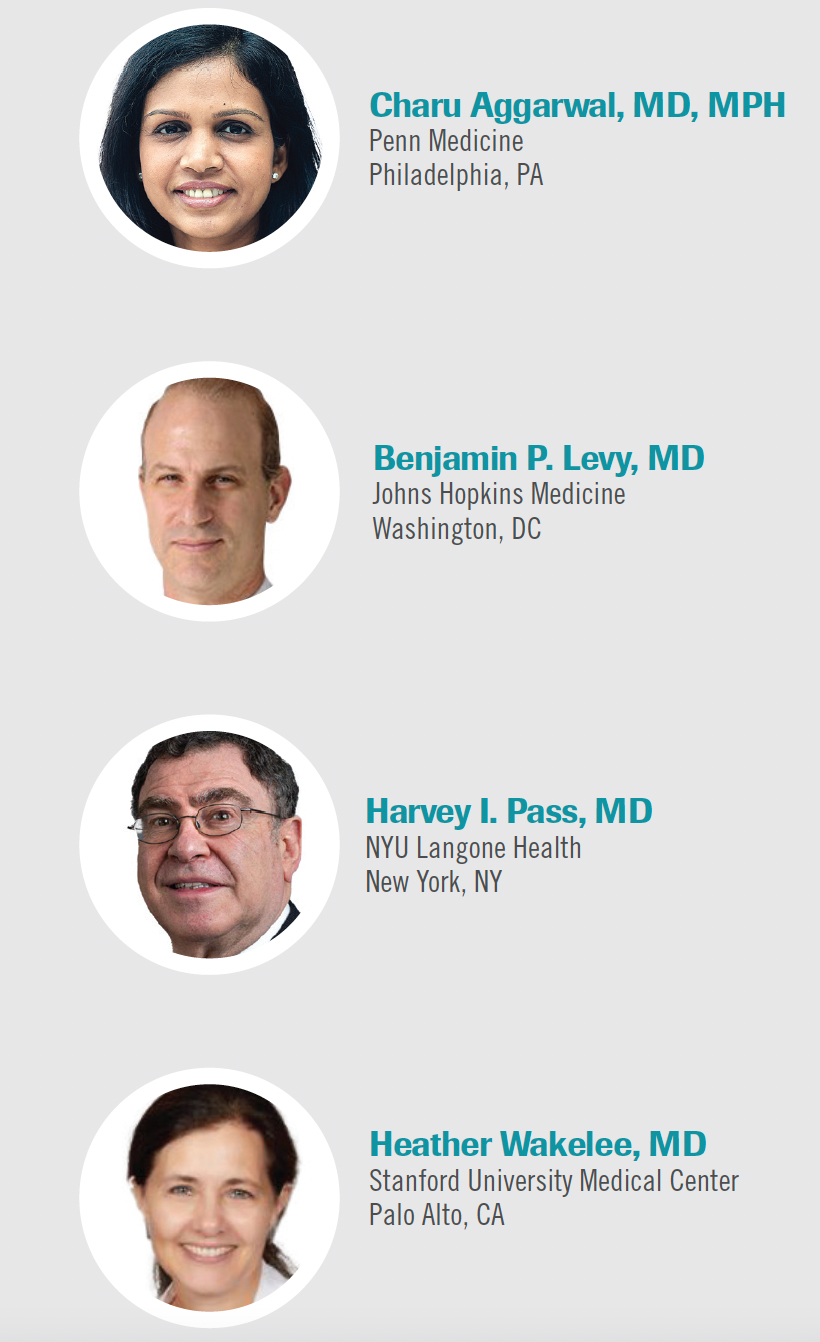 Additional panelists were Benjamin P. Levy, MD, clinical director of medical oncology and associate professor of oncology at Johns Hopkins Sidney Kimmel Cancer Center at Sibley Memorial Hospital in Washington, DC; Harvey I. Pass, MD, Stephen E. Banner Professor of Thoracic Oncology in the Department of Cardiothoracic Surgery and professor in the Department of Surgery at NYU Langone Health in New York; and Heather Wakelee, MD, professor of medicine at Stanford University Medical Center in Palo Alto, California.