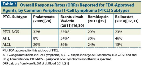 Table 3: Overall Response Rates (ORRs) Reported for FDA-Approved Agents, by Common Peripheral T-Cell Lymphoma (PTCL) Subtypes