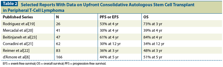 Table 2: Selected Reports With Data on Upfront Consolidative Autologous Stem Cell Transplant in Peripheral T-Cell Lymphoma
