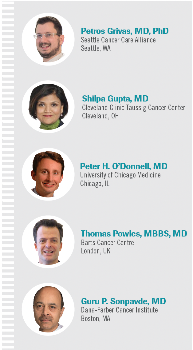 Oncology Program at Cleveland Clinic in Ohio; Peter H. O’Donnell, MD, associate professor of medicine at University of Chicago Medicine in Illinois; Thomas Powles, MBBS, MD, professor of genitourinary oncology, solid tumor research lead, and director of Barts Cancer Centre at St Bartholomew’s Hospital in London; and Guru P. Sonpavde, MD, director of bladder cancer at Dana-Farber Cancer Institute in Boston, Massachusetts.