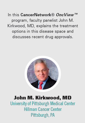 In a recent OncView™ program hosted by CancerNetwork®, John M. Kirkwood, MD, director of the Melanoma Center at the University of Pittsburgh Medical Center’s Hillman Cancer Center, in Pittsburgh PA, detailed immunotherapeutic and targeted treatment options and response monitoring in patients with melanoma.