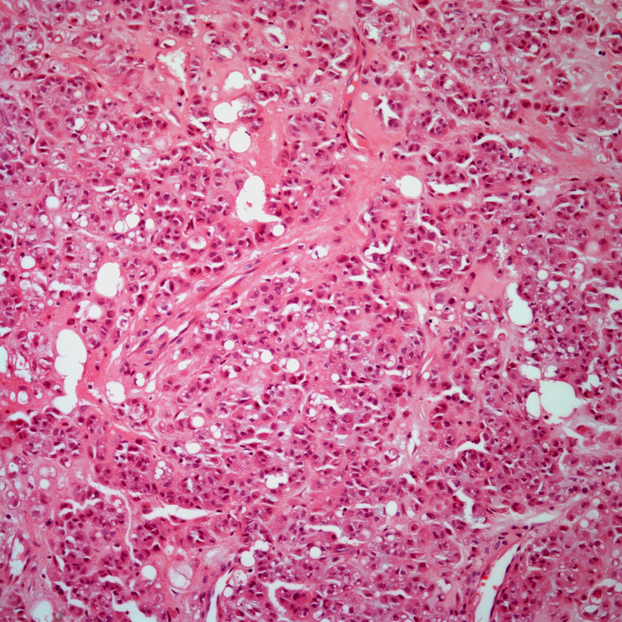 A 45-year-old man presents with a tumoral mass on the right side of his back. He noticed the mass a couple of weeks ago; it is movable and not very painful. A biopsy of the mass is obtained.