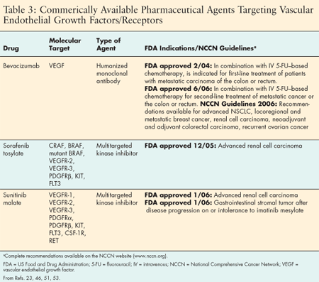 Commercially Available Pharmaceutical Agents Targeting VEGF/Receptors