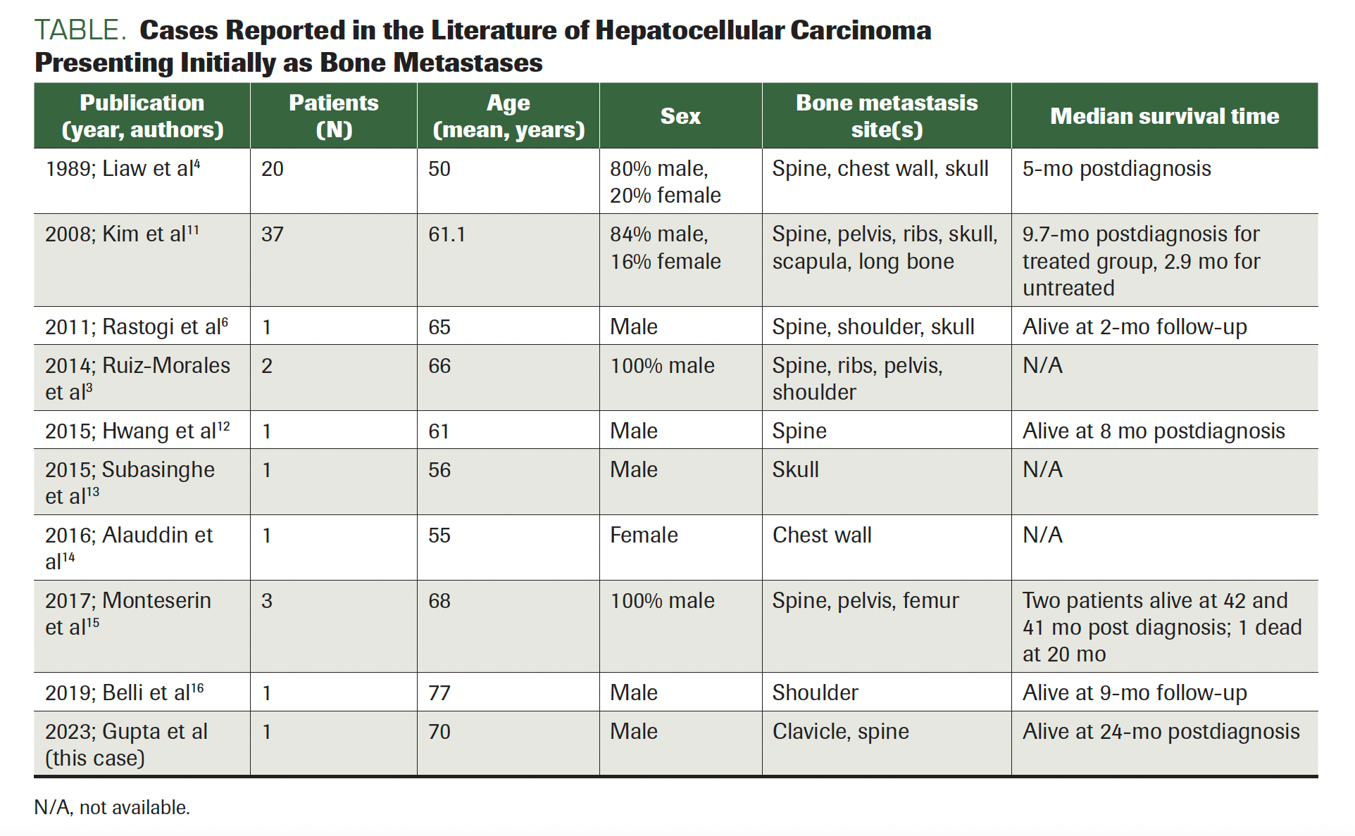 TABLE. Cases Reported in the Literature of Hepatocellular Carcinoma Presenting Initially as Bone Metastases