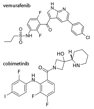 Chemical structures of vemurafenib (top) and cobimetinib (bottom)