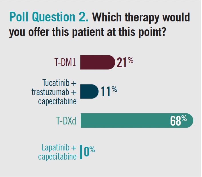 In a polling question, clinicians indicated they would give this patient T-DXd (poll question 2).