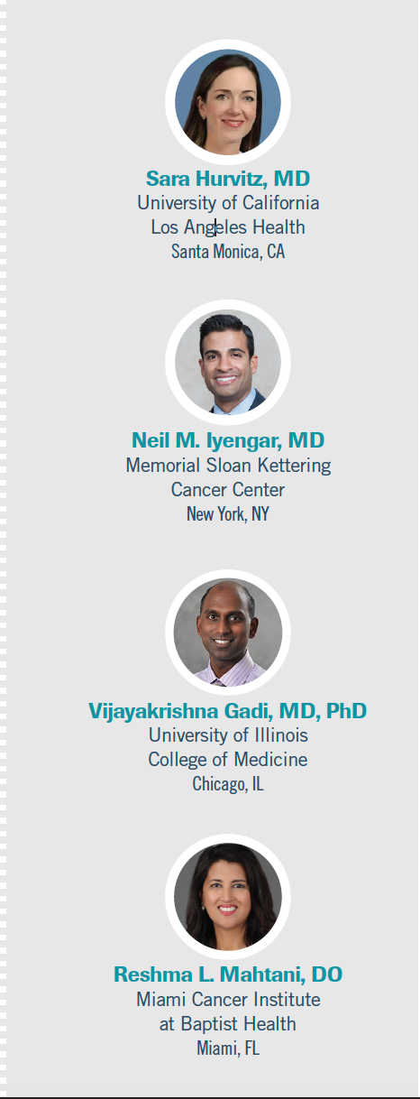 The other experts on the panel were Neil M. Iyengar, MD, a medical oncologist at Memorial Sloan Kettering Cancer Center in New York; Vijayakrishna Gadi, MD, PhD, professor and director of medical oncology in the Department of Medicine and associate director of translational oncology at the University of Illinois in Chicago; and Reshma L. Mahtani, DO, chief of breast oncology at Miami Cancer Institute at Baptist Health South Florida in Miami.
