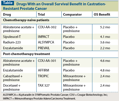 Table: Drugs With an Overall Survival Benefit in Castration-Resistant Prostate Cancer