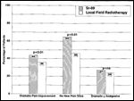 Dramatic pain improvement at the original site was reported by 44.1% of patients after Sr-89 and 36.4% after local radiotherapy (Figure 2) [11]. Importantly, it was further observed that 65% of Sr-89 treated patients were free of new pain sites compared with 46.5% of patients treated with local radiotherapy