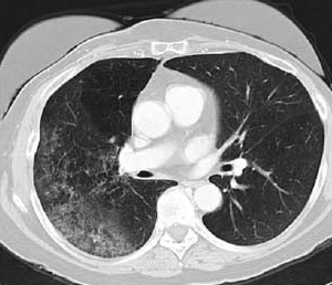 Bronchoalveolar cell carcinoma detected by CT (image provided by the American Thoracic Society).