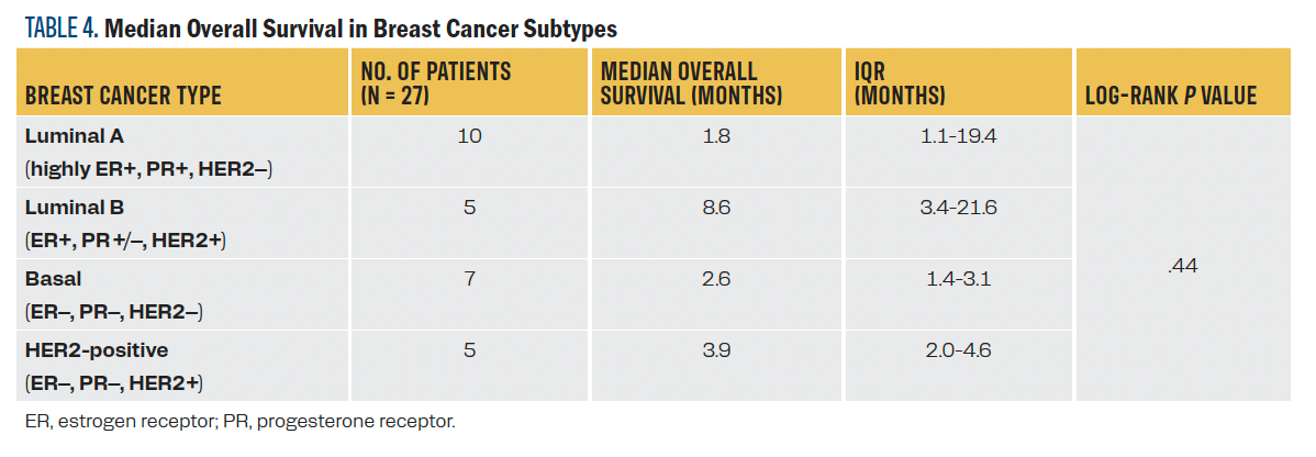 TABLE 4. Median Overall Survival in Breast Cancer Subtypes