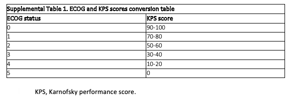 Supplemental Table 1. ECOG and KPS Scores Conversion Table
