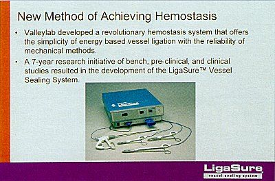 ValleyLab, a division of Tyco Health-care Group, Boulder, Colorado, developed and markets the LigaSure system, which consists of a bipolar radio frequency generator and four hand pieces to be used in laparoscopic, urologic, gynecologic, and general surgery procedures.
