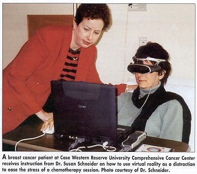 Twenty women, ages 18 to 55, took part in the study at Case Western Reserve University Comprehensive Cancer Center, Cleveland. Each was evaluated twice: once after undergoing a chemotherapy treatment with a virtual reality distraction and once following a session with no distraction intervention.