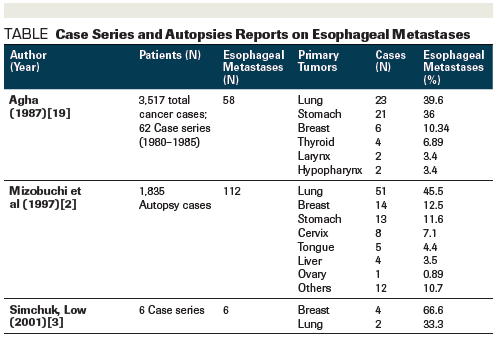 TABLE Case Series and Autopsies Reports on Esophageal Metastases