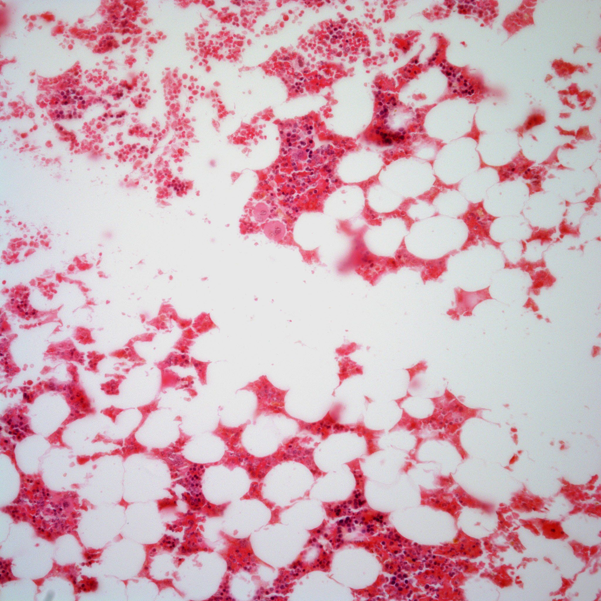 A 42-year-old man presents with chest pain and a cough. Diagnostic imaging reveals a posterior mediastinal mass. Importantly, the patient has a history of thalassemia minor. A biopsy of the mass is performed.