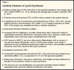 The remainder of CRC cases will be "sporadic," which implies that none of the patient's first- or second-degree relatives have been diagnosed with CRC. However, more meticulous probing of the family history among so-called sporadic or familial cases may identify a hereditary syndrome (Figure 1). In most hereditary CRC syndromes, certain extra-CRC cancer types may be integral lesions. Those that have been shown to be integral to the Lynch syndrome are listed in Table 1.