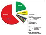 Colorectal cancer (CRC) is the third most common cancer in the United States, where its annual incidence is estimated to be over 145,000. As the second highest cause of cancer death in the United States (surpassed only by lung cancer), its annual mortality is expected to exceed 56,200.[1] Estimating that ~10% of the total CRC burden is hereditary, this incidence translates to close to 14,500 new cases with more than 5,620 deaths. These are conservative estimates, given the striking genotypic and phenotypic heterogeneity of hereditary CRC (Figure 1).[2] In turn, its familial incidence-namely a two- to-threefold excess risk of CRC in patients who have one or more first-degree relatives with CRC but who do not fit any of the hereditary criteria-is estimated to be 15% to 20%, or 22,050 to 29,400 new cases and 8,505 to 11,340 deaths annually.