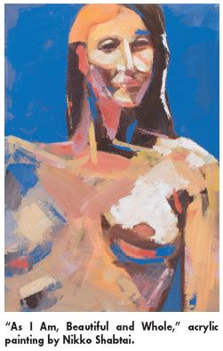 Mr. Shabtai’s acrylic painting portrays a woman who appears to have undergone a mastectomy. “I was painting the model in my painting workshop when I picked up my knife instead of a brush and painted her without a breast,” Mr. Shabtai explained in a written statement. He said he realized that his inspiration for this piece was the breast cancer diagnosis, and subsequent mastectomy, that a family member had recently experienced.