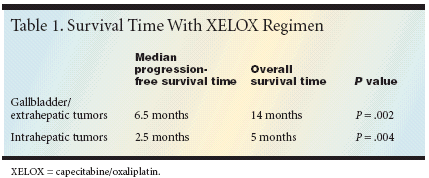 TUEBINGEN, Germany-Oral capecitabine (Xeloda) plus oxaliplatin(Eloxatin) is a "highly active"outpatient therapy for advanced biliarysystem adenocarcinomas, reportedOliver Nehls, MD, a postdoctoralresearch fellow, Department of InternalMedicine I, University HospitalTbingen, Germany, citing resultsfrom a phase II multicenter study (abstract4091).Outcomes were poorer in intrahepaticvs gallbladder/extrahepatic tumors,but overall, the capecitabine/oxaliplatin (XELOX) combination"has a favorable safety profile and ismore convenient than infusional regimens,avoiding the need for indwellingdevices and frequent hospital visits,"Dr. Nehls said."There's a difference in the entitieson the one hand, but on the otherhand, [XELOX is] a highly active therapyfor extrahepatic and gallbladdercarcinomas," Dr. Nehls said. Whilebiliary system carcinomas are relativelyrare, he told ONI, about 7,000 newcases are expected in the US each year.Currently, surgery is the only curativetreatment option, but most patientsare in advanced stages of the diseaseand thus unresectable. While chemotherapycan play a palliative role, nostandard-of-care treatment exists. Accordingly,Dr. Nehls and his colleagueswanted to determine the activity andtoxicity of the XELOX regimen in thispatient population.