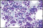 -Lymph node fine-needle aspiration specimen. Field stain. Source: Nephron, Wikimedia Commons.