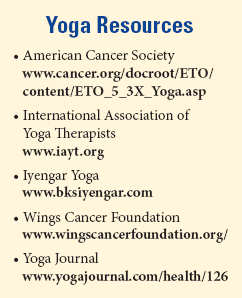The field of yoga therapy is relatively new, and so far there are no universally accepted standards of training and certification. In general, it’s best to find as experienced a teacher as possible, ideally one who has worked with cancer patients (see Sidebar on page 2).