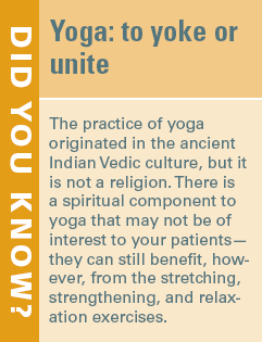 There are many styles of yoga, and not all are appropriate for everyone. If patients express an interest in trying yoga, find out what style they intend to pursue. Having the student bring in a book showing the practices he or she would be doing can help you judge what is appropriate. Popular styles such as Astanga yoga, power yoga, vinyasa flow, Bikram yoga, and hot yoga demand at least a moderate degree of fitness and flexibility, and thus may not be appropriate for many people with cancer.