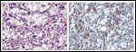 Immunostaining for RCC antigen, 40× objective. H&E = hematoxylin and eosin.