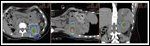 After our discussion, the patient met again with the transplant team and with radiation oncology. She elected to pursue SBRT with close radiographic follow-up of the other lesions. Figure 5 is a schematic illustration of the treatment given. The prescription dose was 10 Gy per fraction for a total of three fractions. The percentage of normal kidney receiving a dose higher than 15 Gy was less than 30%.