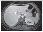 T1 post-Vibe axial fat sat MRI. CT = computed tomography; MRI = magnetic resonance imaging.