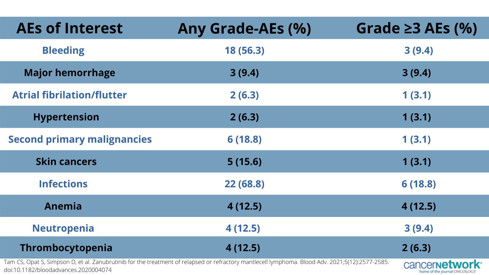 Adverse effects of special interest associated with zanubrutinib in relapsed/refractory mantle cell lymphoma.